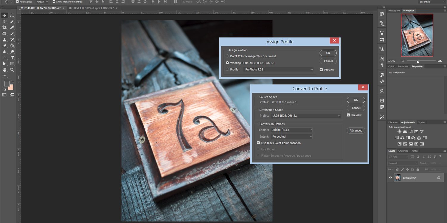 Assign profile е за предпочитане тогава, когато липсва прикачен профил, но внимавайте, тъй като има вероятност да не свърши работа. В този случай често налучквате какво е подходящото цветово пространство за присъединяване.