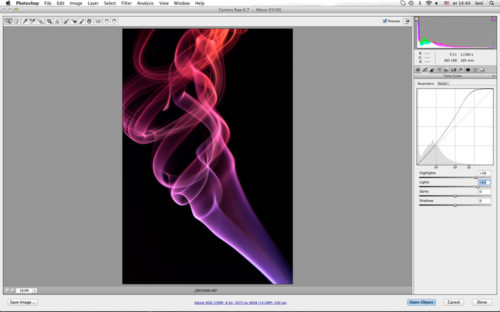 6. Обработка. Това е последната част – пиша я по-скоро за обща информация. Когато свалите всичко на компютъра ще разберете дали резултатите са задоволителни. В общи линии на малкия дисплей недостатъците са скрити и когато вдигнете снимката в реален размер започват един по един да лъсват. Е, в случая се опитах да споделя един метод, с който такива недостатъци са минимални – дори шума не е дразнещ, а е в границите на нормалното. И ако това е така снимките ви не се нуждаят от много корекции. Когато обработвате снимка свикнете винаги първо да я преглеждате в Camera RAW и ако има нужда от корекции да ги извършвате там – качеството е много по-добро. Photoshop в случая е само ако искате някакъв ефект. Първото, на което трябва да спрете вниманието си – успели ли сте да отделите добре фона. Ключовата дума за обработка на снимки с дим – Levels. Това е основният режим, с който ще работите. А до колко интензивно ще го ползвате зависи именно от плътността на фона и плътността на пушека. Силуета на дима трябва да контрастира на фона, за да се откроява добре. Поиграйте си с плъзгачите на Levels/Point Curves още докато сте в Camera RAW.