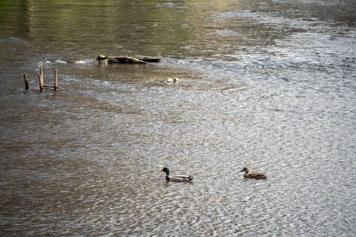 Снимайки в музея на миньора бях леко разочарован, защото той бе добре осветен и камерата се стараеше да не пада по 1/30 сек. На инат пробвах с по-ниска скорост и установих, че с китовия 16-50 правя добър кадър и при ½ сек. С дългия 50-250 гоних патици по реката, където бе малко сенчесто. Снимах на 1/30 сек. при 250mm (което всъщност си е приравнено 375mm), околните храсти бяха резки, но патиците се бяха размазали защото плуваха бързо.