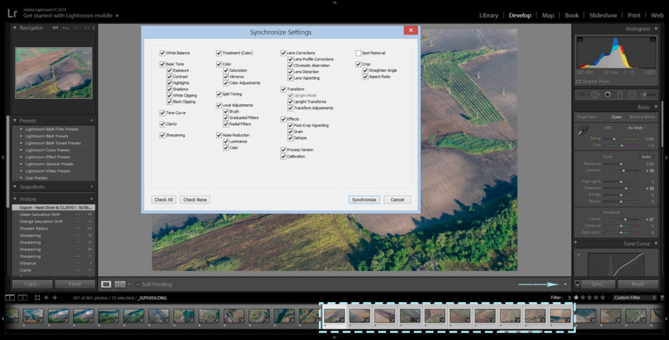 По-горе казах, че има добавени функции за редакция. Да, Lightroom съдържа набор от инструменти, които позволяват на фотографите да манипулират изображенията – всички функции на Adobe Camera RAW, маски, филтри, градиенти, клониране, сглобяване на панорами и прочие, плюс удобството да синхронизирате настройките на голям брой снимки, с близки изходни данни. Най-интересното нещо при Lightroom е т.нар. недеструктивна обработка – т.е. вие правите обработка на дадена снимка, а програмата ви показва само превю на тази редакция, без реално да нарушава суровия файл.