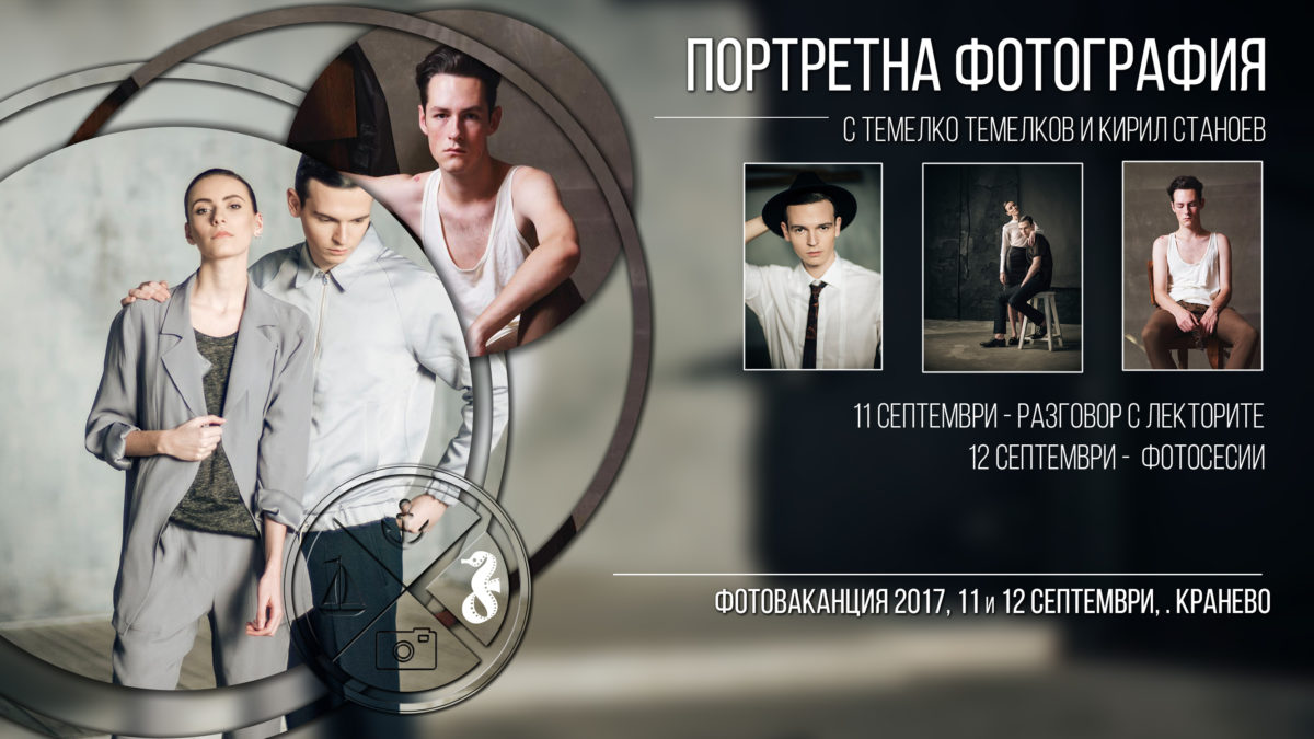 - Портретът – по тази тема ще говорят и ще проведат уъркшоп двама от най изявените български фотографи Темелко Темелков и Кирил Станоев. Предвидени са два дни за срещи с лекторите, в които ще можете да задавате въпроси и да работите с моделите на Фотоваканция. Ще има и специален семинар с Темелко Темелков в който фотографът ще сподели „За какво плаща клиента?“.