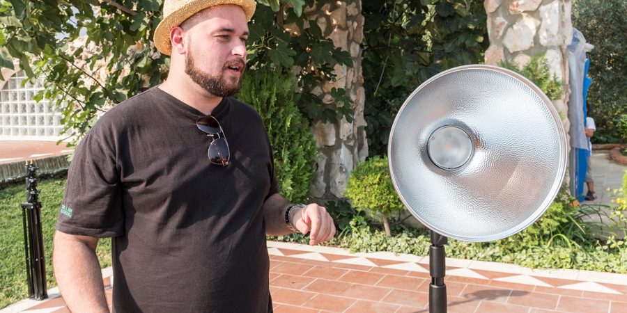 Кратко запознаване с моделите (не с Ани, а със светкавиците) и съответно стила на работа на Тодорински. Независимо от силното слънце, светкавиците помагаха на фотографа бил той лектора или някой ваканционер сами да моделират осветлението по свой вкус. Времето за снимки никога не стига, но поне яркото слънце не ни попречи с неговата всезаливаща светлина.
