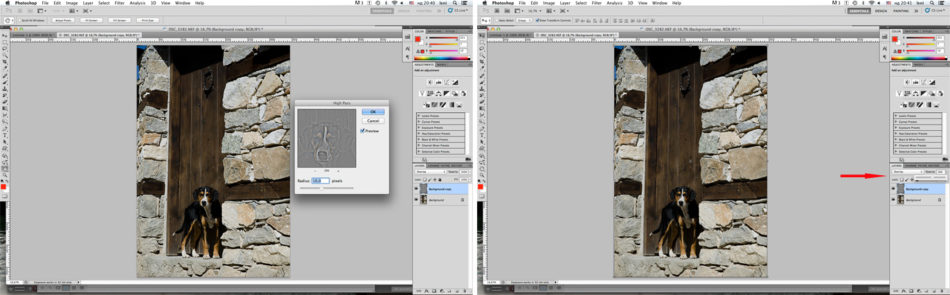 Ще завърша обаче с един друг популярен метод, който е много подходящ за подчертаване на контури – High pass. Интересното при него е, че изобщо не работите с филтрите за изостряне, а по скоро е игра на смесване на режимите на два леъра и филтъра High pass. Все пак внимавайте с този метод тъй като понякога резултатите са доста драматични.