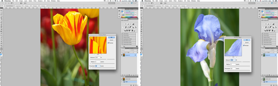 Преди по-сериозно да разгледам различните видове ето няколко настройки на филтъра Unsharp Mask, които действат добре в повечето общи случаи: